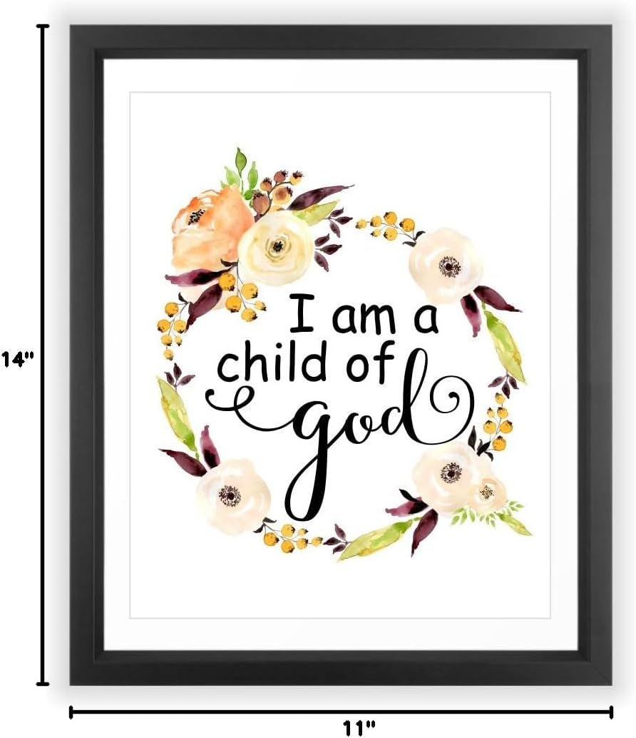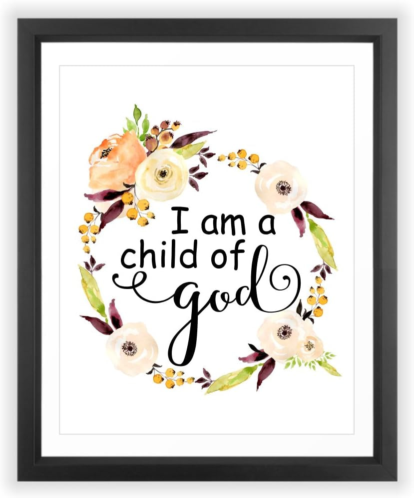 11X14 Unframed I Am a Child of God Floral Watercolor Art Print Housewarming Nursery Quote Kids Wall Motivational Poster Holiday Wgnb040