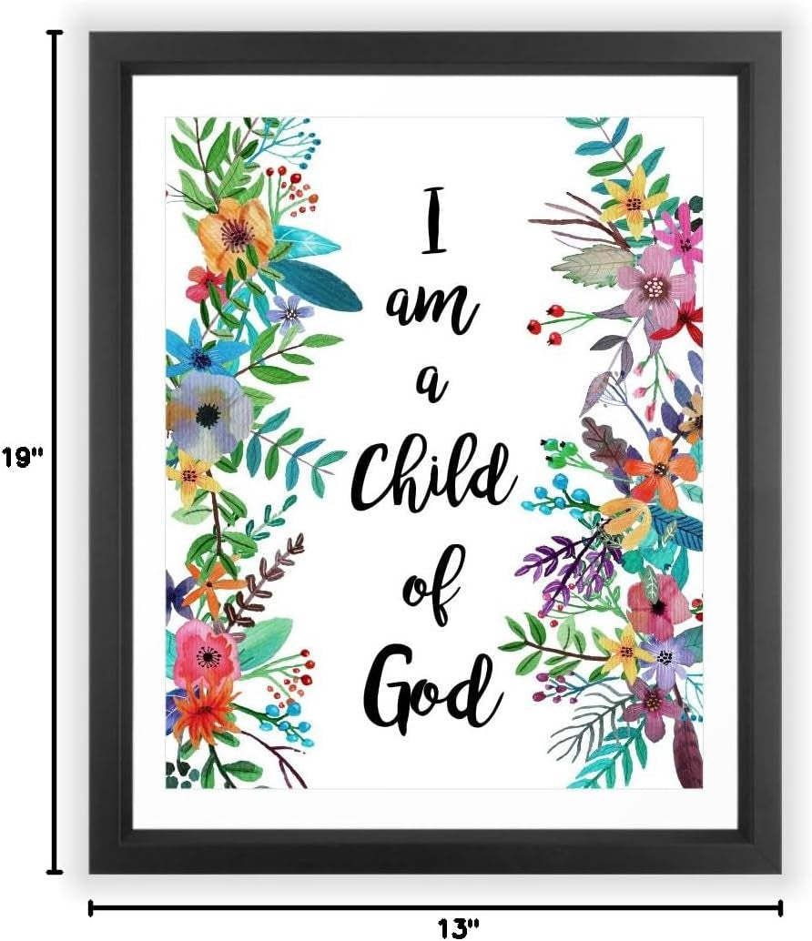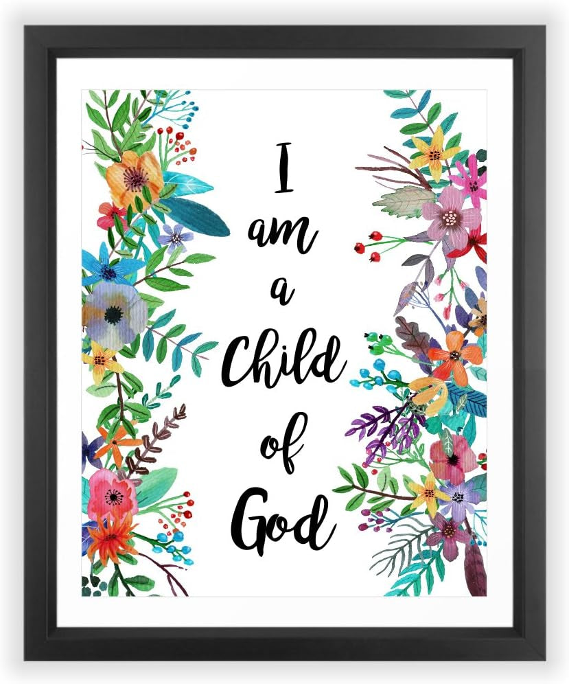 13X19 Unframed I Am a Child of God Floral Watercolor Art Print Housewarming Nursery Quote Kids Wall Motivational Poster Holiday Wgnb020