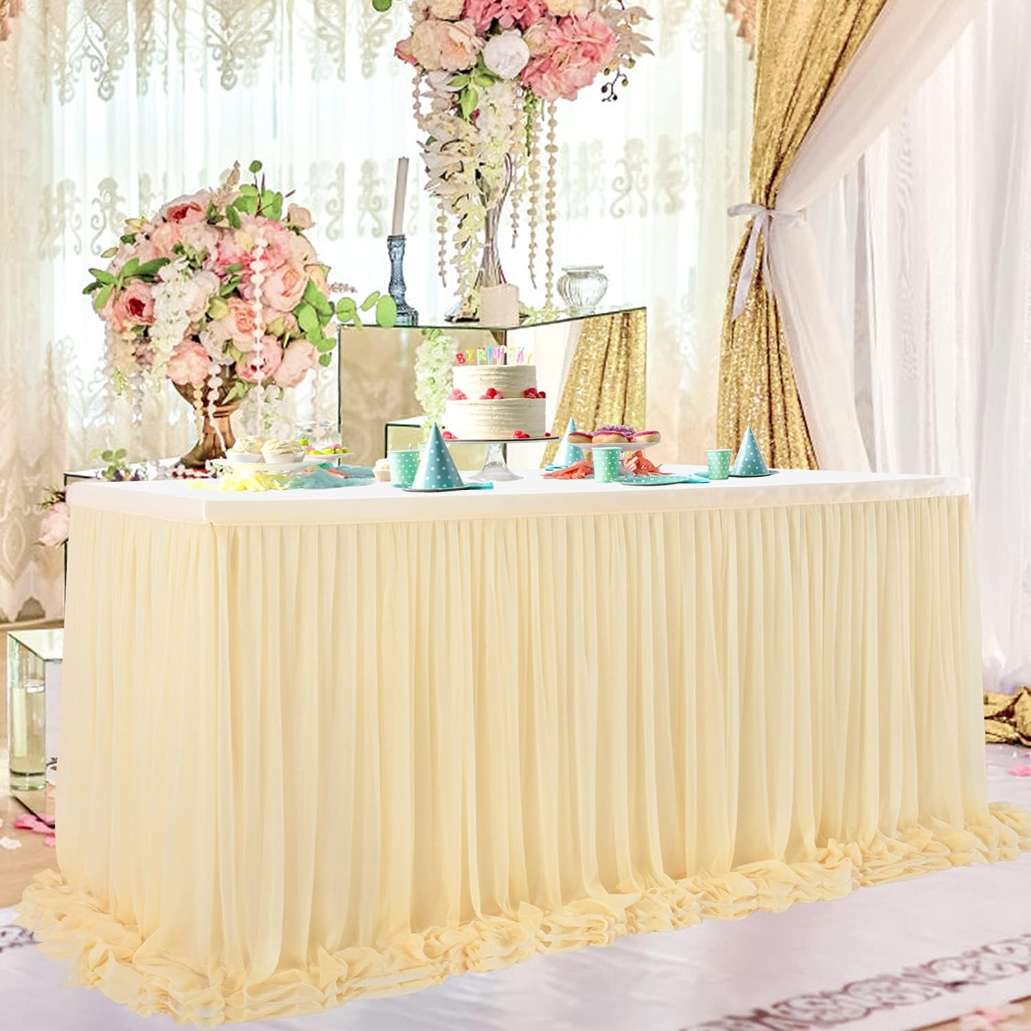 6Ft for Rectangle Tables or round Tables Champagne Tutu Tulle Table Skirt Cloth for Wedding Baby Shower Birthday Party Dessert Buffet Banquet Decorations