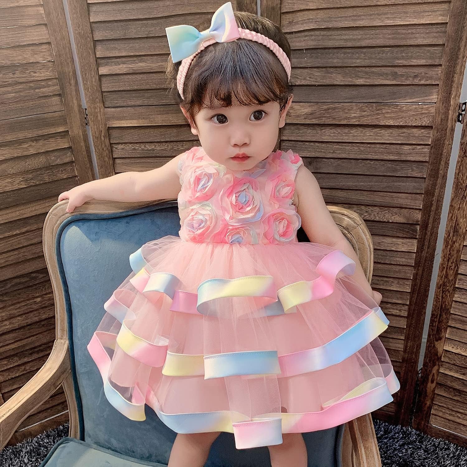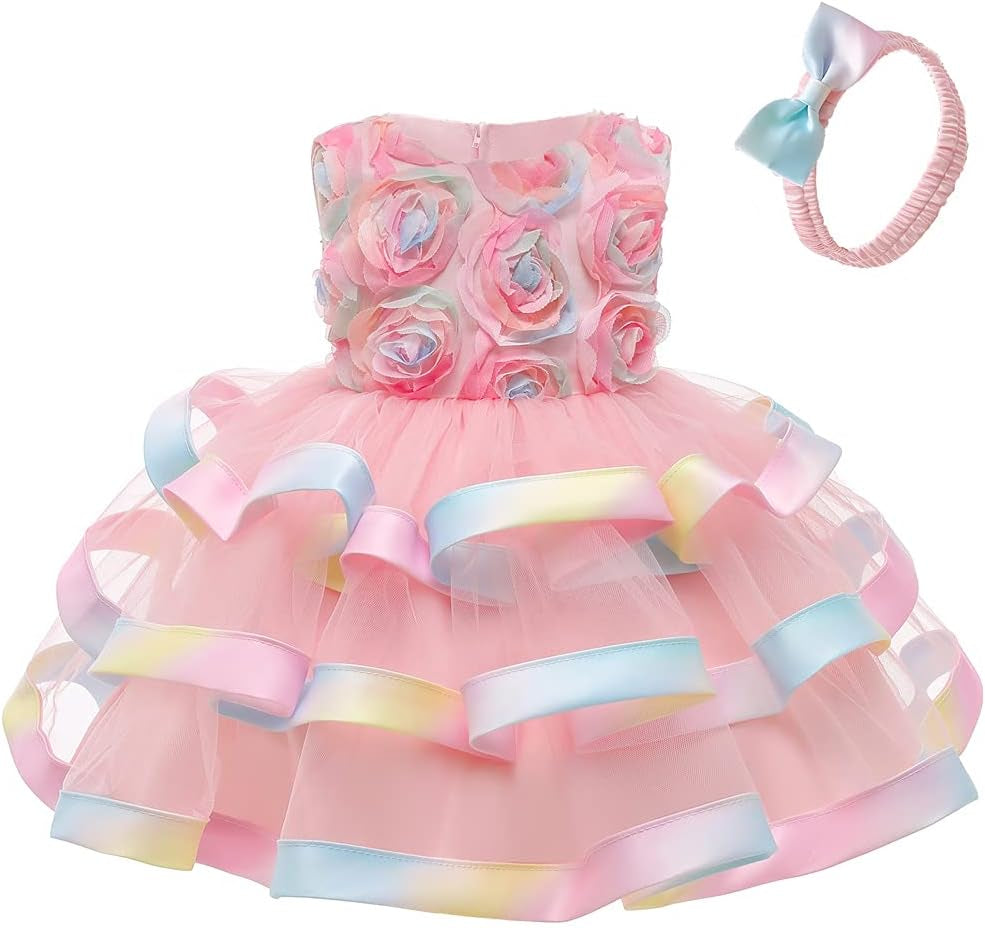 6M-6T Toddler Baby Girls Colorful Floral Tutu Gown Dress Party Evening Christmas Dance Dresses & Headwear