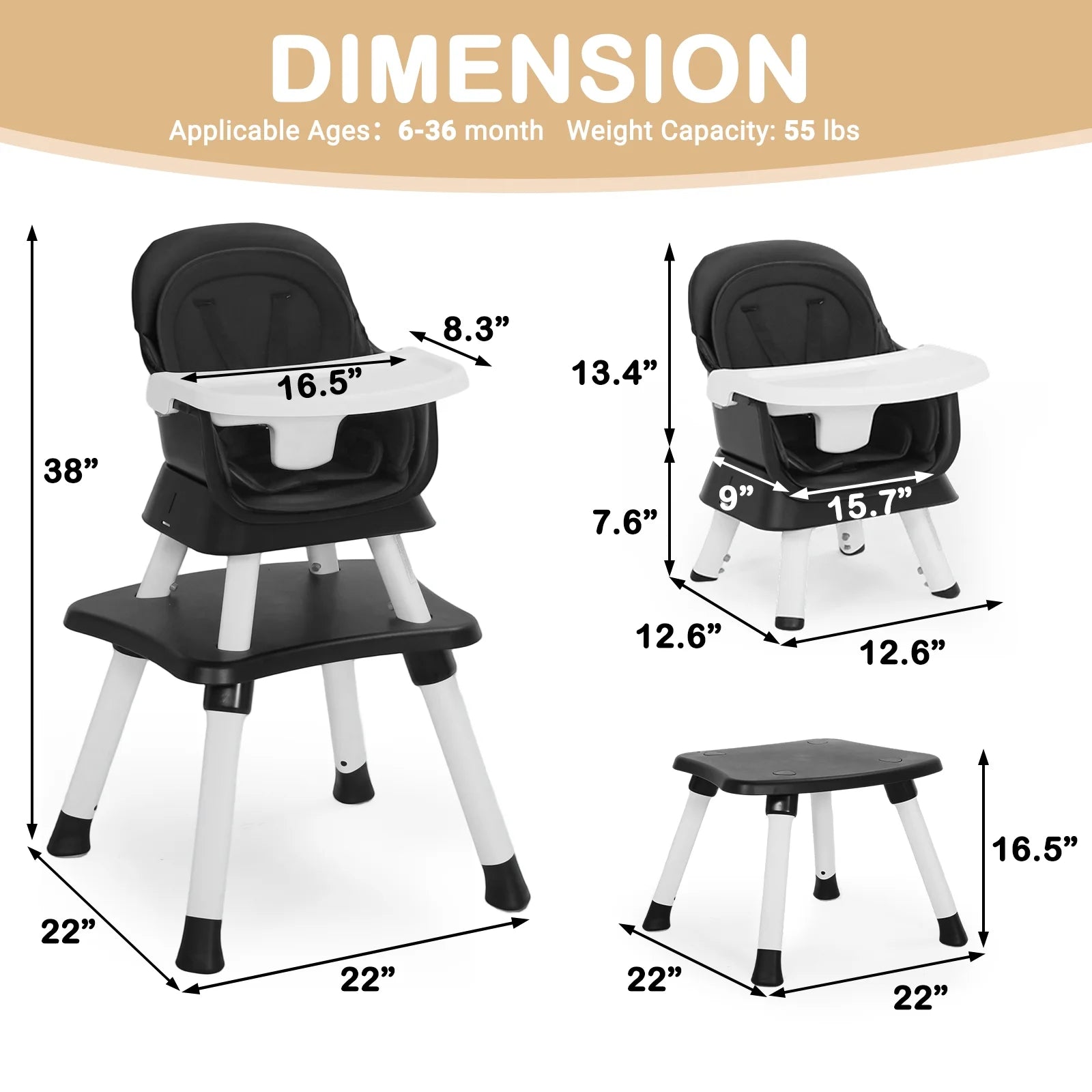8 in 1 Baby High Chair, Toddler Dining Booster Seat for Eating, Black