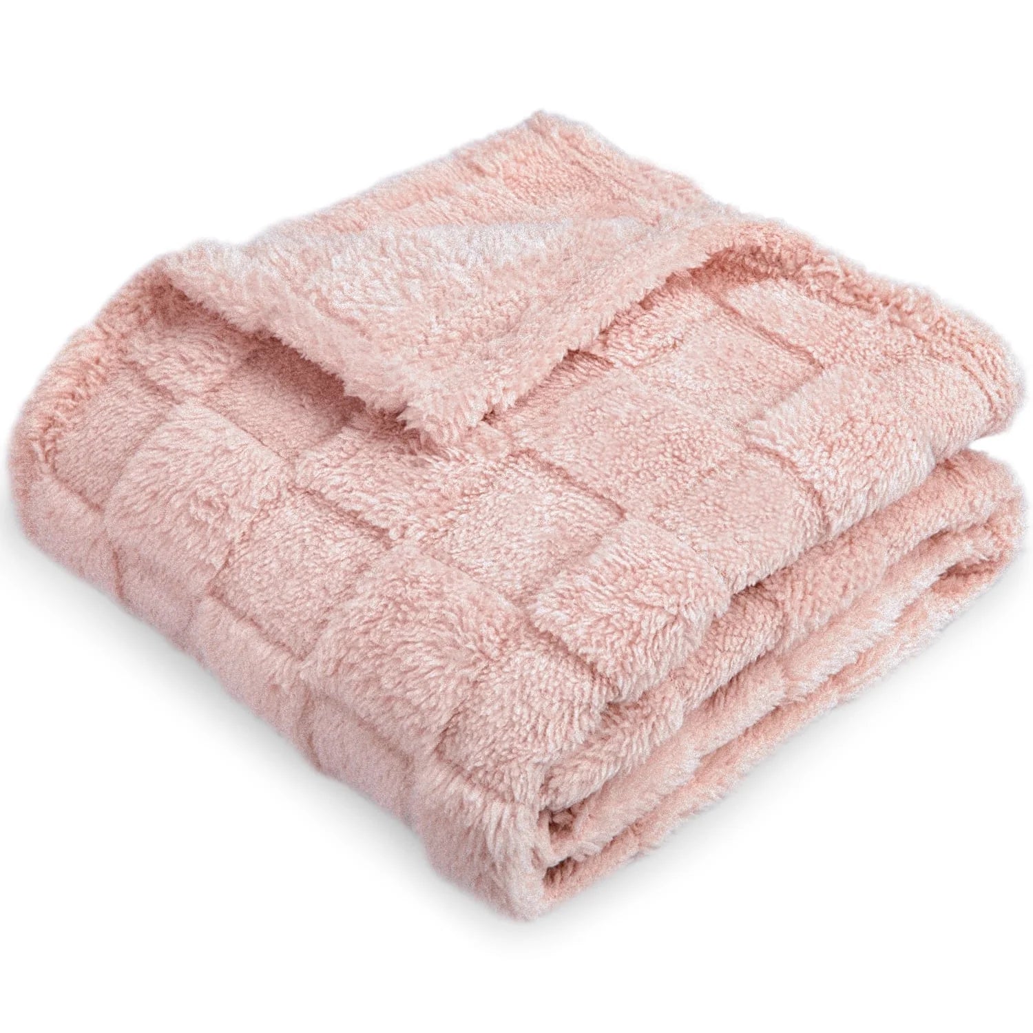 Baby Blanket for Girls 3D Checkerboard Grid Ultra- Soft Fluffy Toddler Blanket for Kids Warm Cozy Chessboard Chocolate Design Infant Blanket 30 X 40 Inches,Pink