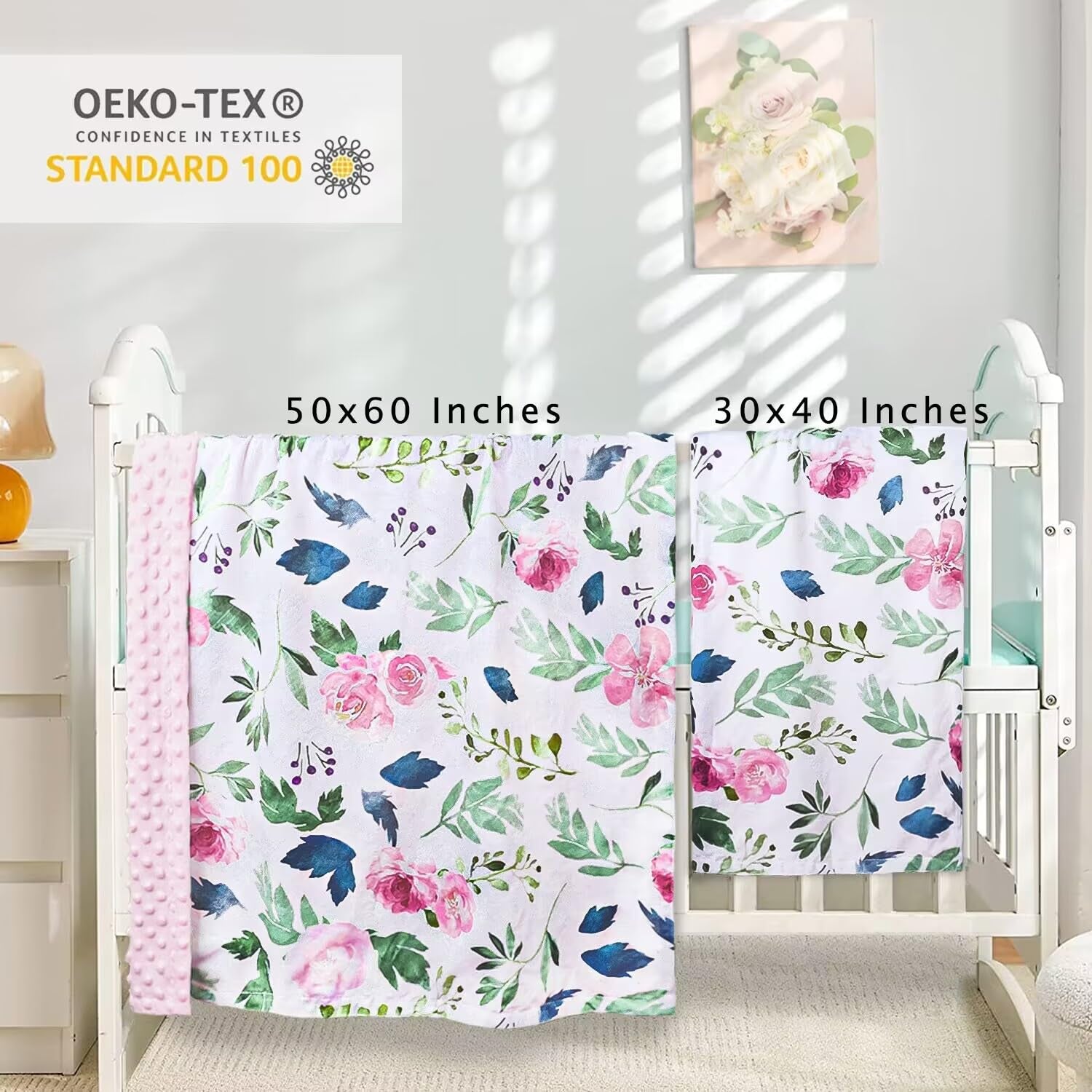 Baby Blanket for Girls Super Soft Double Layer Minky with Dotted Backing, Receiving Blanket with Pink Floral Multicolor Printed Blanket 30 X 40 Inch(75X100Cm)