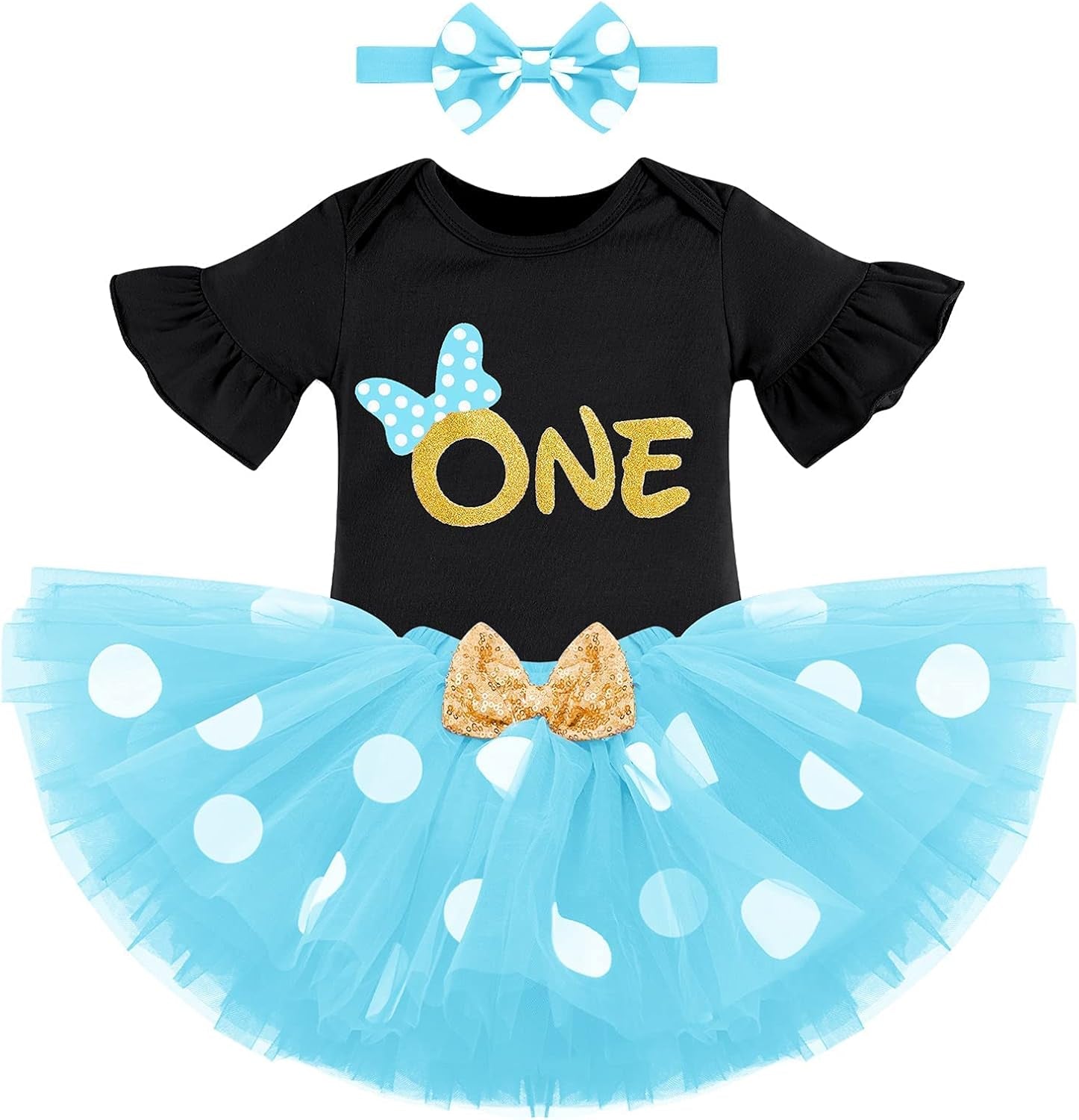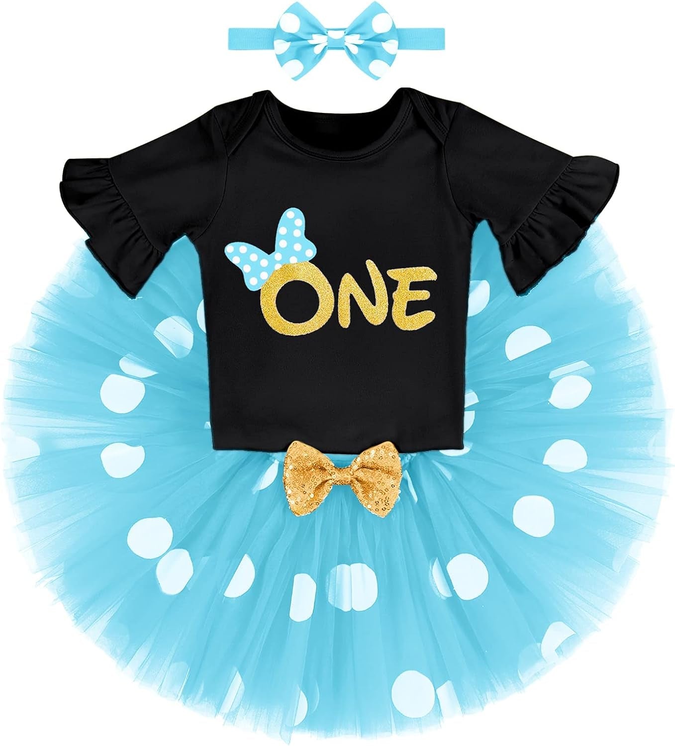 Baby Girl First Birthday Outfit Ruffle ONE Party Romper Polka Dots Tutu Skirt Headband Cake Smash Clothes Set