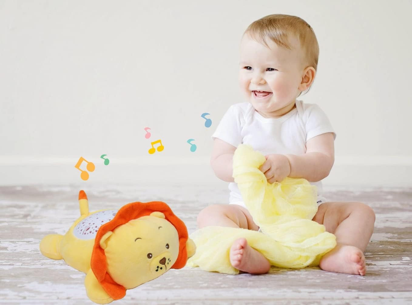 Baby Soother White Noise Sound Lion Plush Toys Star Projector Melodies Nightlight Soother Kids Gifts
