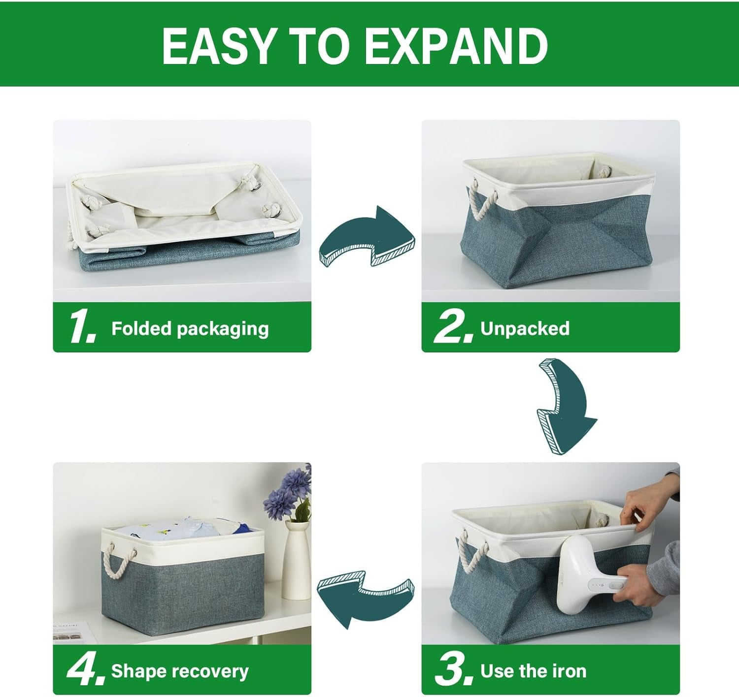 Fabric Storage Baskets for Shelves 3 Pack Large Storage Bins for Organizing Linen Collapsible Organizer for Closet-Deep Green