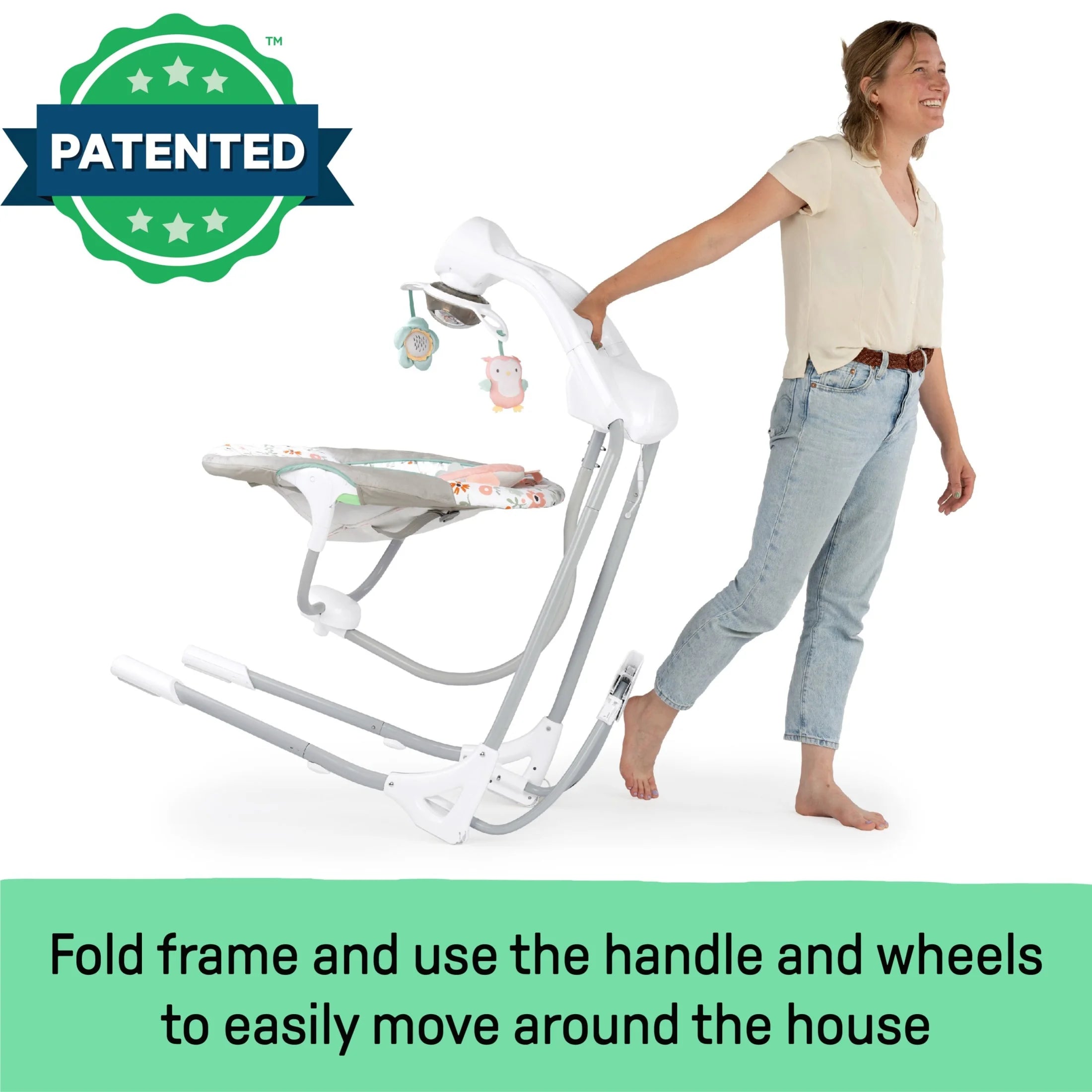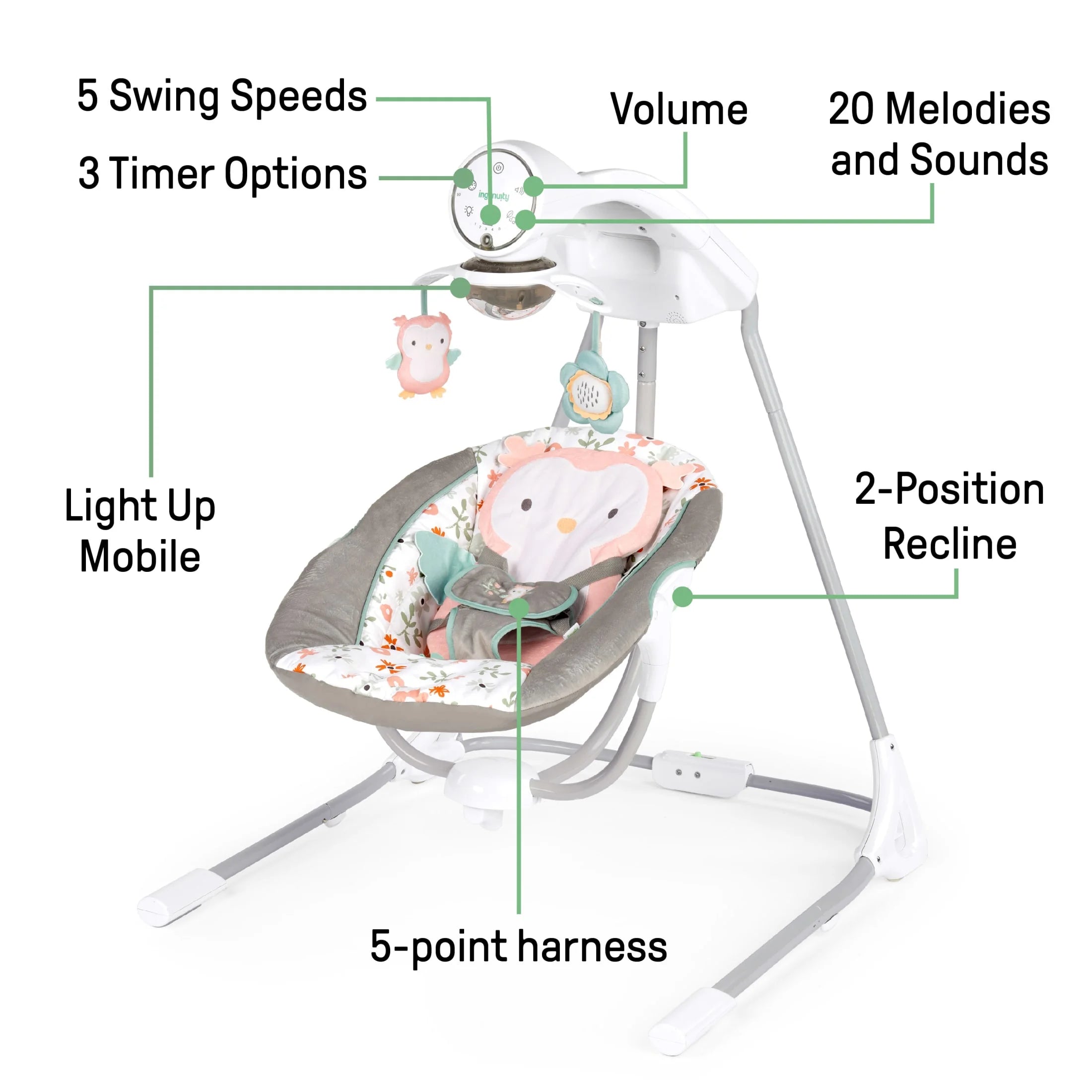 Inlighten Baby Swing, 5-Speed, Swivel Infant Seat, Nature Sounds, Lights - Pink, Nally