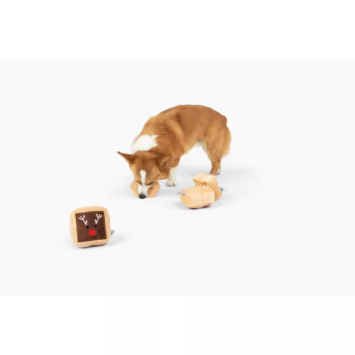 Midlee Gift Box Christmas Squares Sugar Cookie Plush Dog Toy-Reindeer, Gingerbread Man, Santa, Elf
