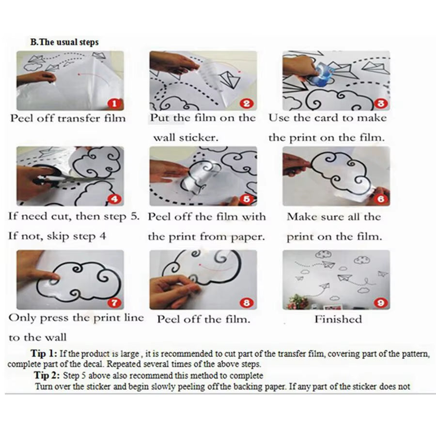 Note:if you use the hot air to blow the sticker over and over again by hair dryer when you take away from the wall, there will be without damaging walls