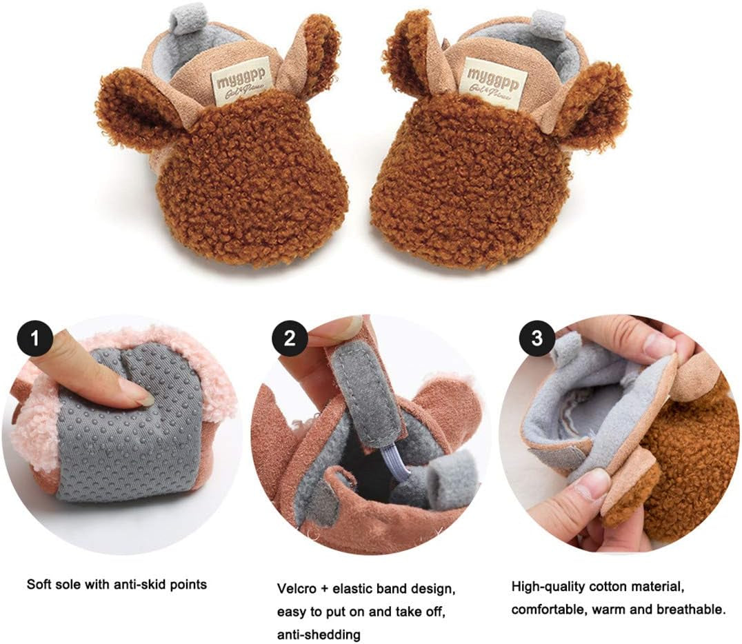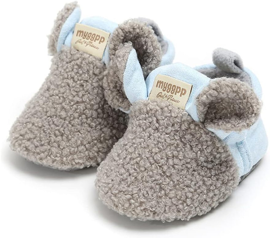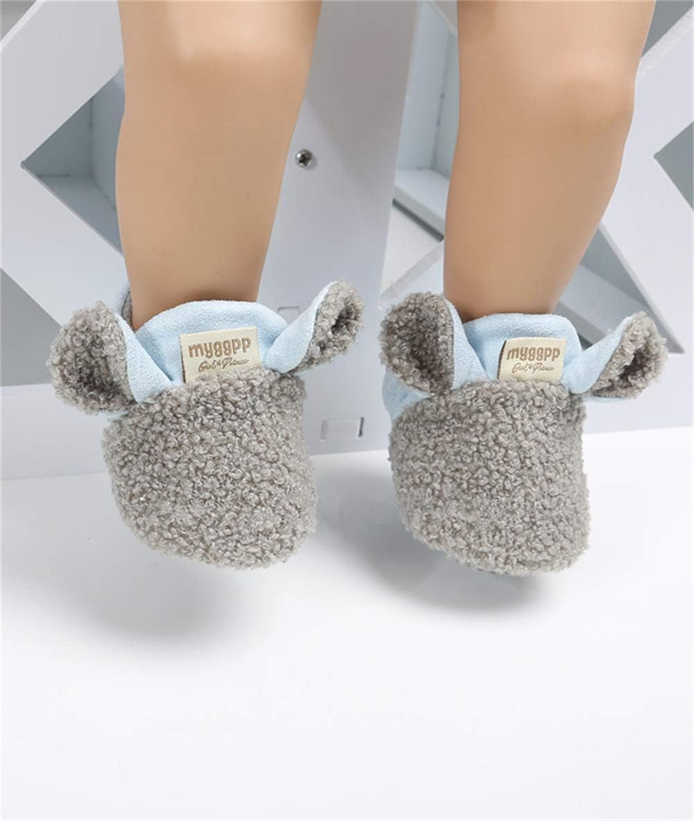 Newborn Baby Cozy Fleece Booties with Grippers Winter Slippers Socks Soft Sole Stay on Infant First Walker Crib Shoes