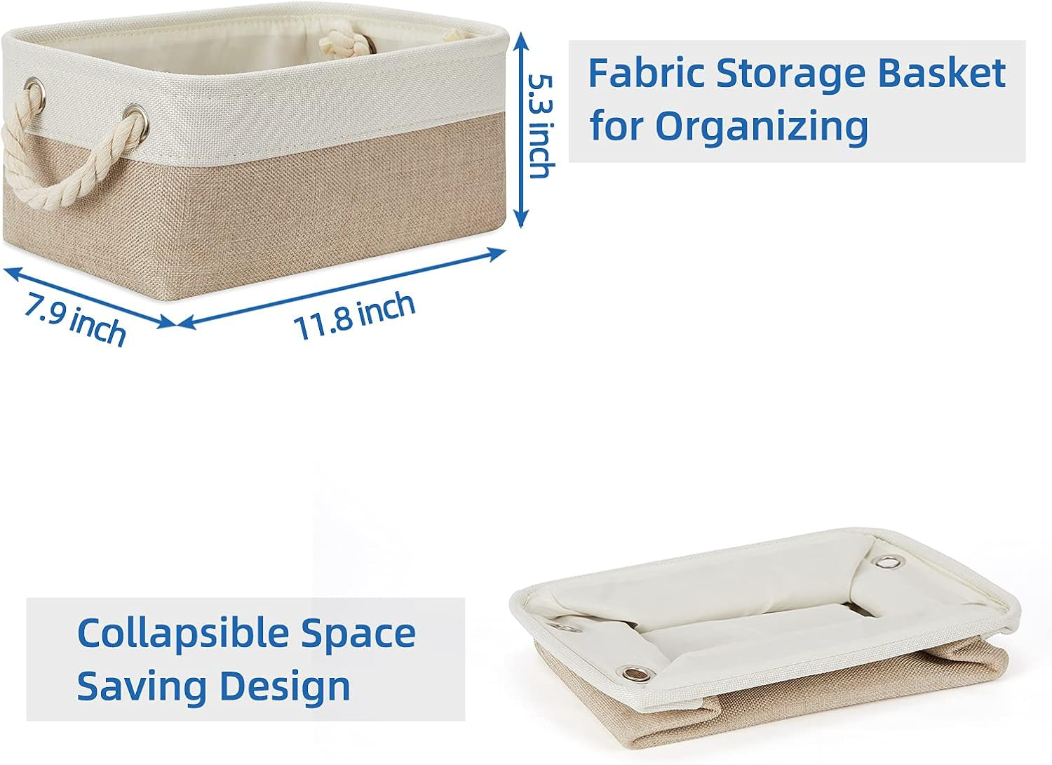 Small Fabric Storage Baskets 6 Pcs Decorative Baskets Bins for Gifts Empty Foldable Storage Basket with Handles for Organizing Shelf, Towels (White&Khaki,11.8 L X 7.9 W X 5.3 H Inches)